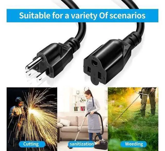 Heavy Duty: sturdy, flexible, ideal for tight spaces or behind furniture such as sofas, TVs, bookshelves, cabinets and bedside nightstands to keep the furniture closer to the wall For the high-power household appliances uses, including laptops, phone chargers, microwave, and other appliances; 13A / 125V, perfect for creating a centralized hub for your electronics at your home, office, workshop or garage Convert your standard AC power cord to a slim flat plug, providing angular flexibility. Plug into the top outlet and still have usage of the bottom outlet with this flat plug cord This power cord extension is suitable for temperatures from -40°F to 140°F; PVC jacket protects against moisture, abrasion, and direct sunlight;!!!