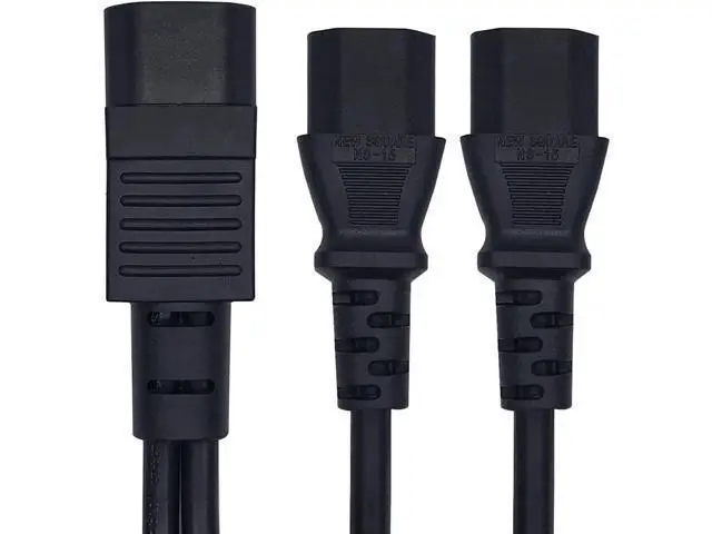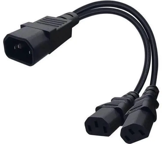 1FT C14 Male PDU Style Computer Power Extension Cable Y Splitter Power Plug Cord (C14 to 2*C13)