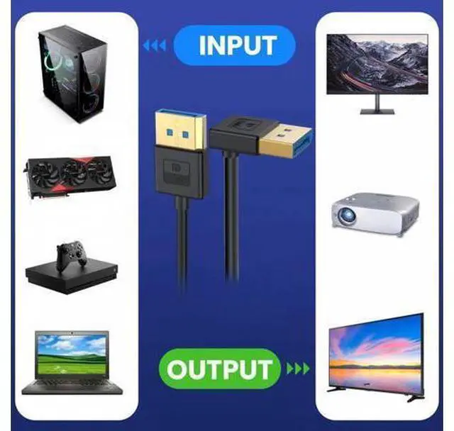 Angled DisplayPort 1.4 DP to DP Cable 8K 60hz Cable Ultra-HD UHD 4K 144hz 90 Degree for Desktop Laptop