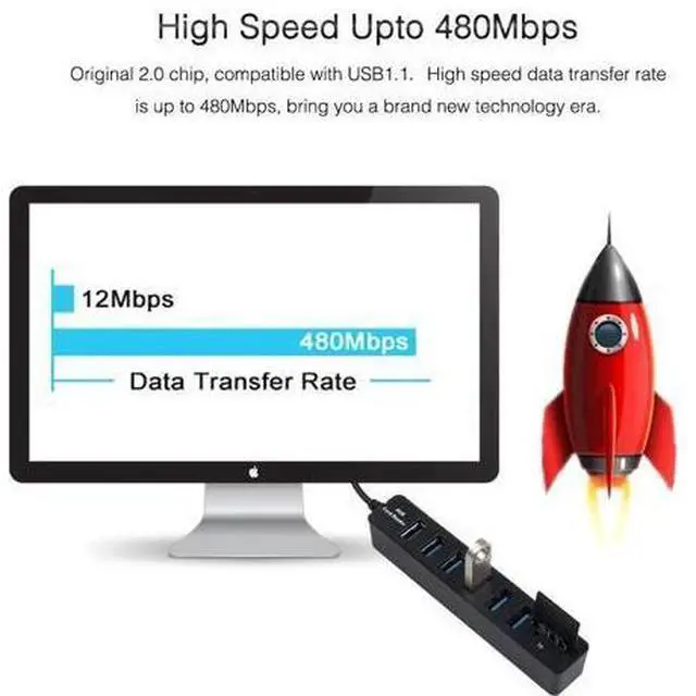 Features 1.100 % brand new and high quality USB 2.0 HUB with SD/TF card reader. 2. The USB 2.0 HUB is designed especially for laptop, desktop computer, expands one USB 2.0 port into six easily. 3. It also comned with a SD and TF card slots, which makes reading different types of memory cards is very convenient. 4. USB 2.0 interface transmission speeds is up to 480Mbps. 5. Plug and play, USB-powered (no external power or battery needed).