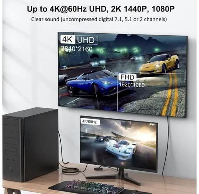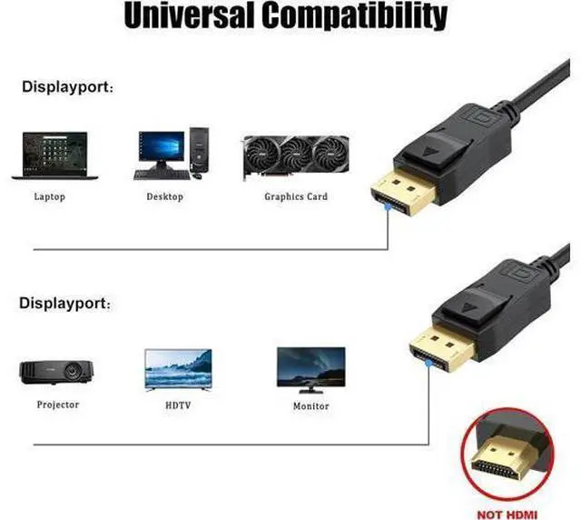 Display port cable transmits HD video and audio from pc/laptop to monitor for video streaming or gaming configuring monitor for an Extended desktop or Mirrored displaySupports video resolutions up to 4K (3840x2160) @60Hz including 2K (2560 x 1440) @165Hz/144Hz/120Hz/60Hz/30Hz 1080P Full HD (1920 x 1080) @240Hz and flawless audio pass-thru for uncompressed digital 7.1 5.1 or 2 channelsDP to DP Cable compatible with all DP port devices such as Desktops Laptops Gaming monitor DisplayPort PC Docking station Display Port Swich Display Port Splitter DisplayPort MST HubGold-plated connectors bare copper conductors and foil & braid shielding combine together to provide both superior cable performance and reliable connectivityUVOOI provide 2-year warranty.