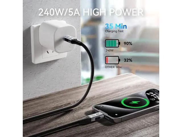 Wear-Resistant: The nylon-braided USB C to USB C cable is tough and built to last. Its double-sided USB-C connectors, crafted via secondary injection molding, are highly resistant to bending, perfect for frequent use. The aluminum shell offers protection, while high-purity copper conductors with triple shielding guarantee stable charging and reliable data transfer when required, ensuring durability and giving you peace of mind