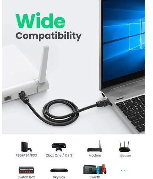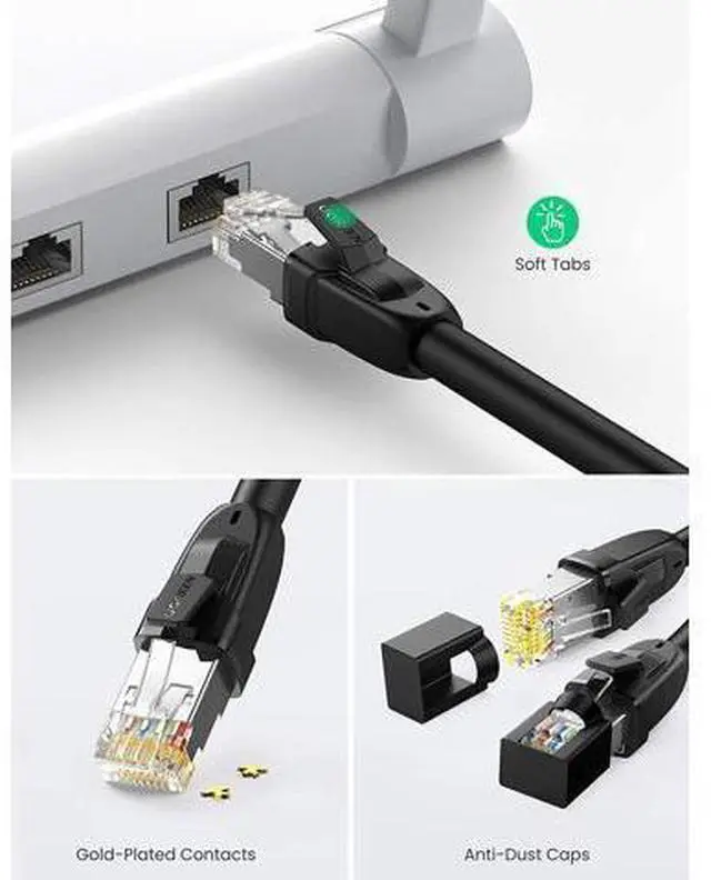 Widely Compatible: With the RJ45 connectors, UGREEN Cat 8 internet cables is universally compatible with networking switches, computers, laptops, routers, ADSL, network adapters, hubs, modems, PS5, PS4, X-box 360, X-Box One, Switch, patch panels and other networking devices.