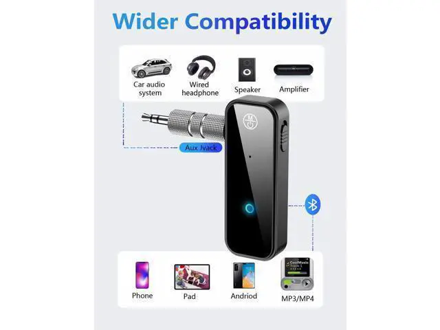 Bluetooth Transmitter Receiver: This wireless adapter can be used as both a transmitter and receiver enabling seamless audio streaming from your TV phone or CD player to your Bluetooth headphone speaker AirPods. Compact Design for Easy Portability - The Bluetooth Car adapter takes up little space so you can take it anywhere. Connect it to your vehicle speakers or any headphone jack and the 3.5 mm jack design gives you no tangled cords to untangle. The independent multifunction button on the bluetooth receiver for car allows you to easily control music volume and calls with one click. Bluetooth Aux Receiver For CarThe Bluetooth 3.5 mm Aux receiver can turn your old car audio/ 3.5 mm wired earphones/home audio/speakers into wireless. Compatible with most Bluetooth-enabled devices such as smart phones laptops tablets and computers.