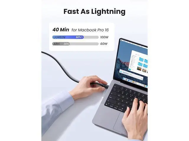 Fast Charging: UGREEN USB C cable supports PD 3.0 and QC 4.0 / 4.0 +. It is backward compatible with 85W/ 65W/ 45W/ 30W/ 20W USB-C charger, iPhone 15 can be quickly charged to 60% in just 30mins