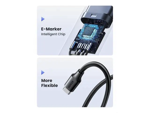 Safe: The 100W USB-C charging cable has an e-marker chip to automatically adjust the voltage and current to the connected devices Flexible and