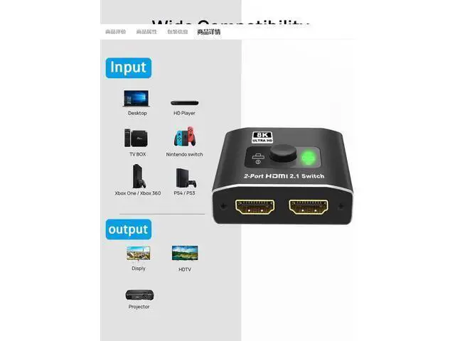 Package Includes: 2x1 HDMI 2.1 Switch 5V Power Adapter User Manual