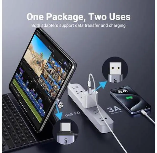• UGREEN USB to USB C Adapter 2 Pack 10Gbps USB C Female to USB Male Adapter Thunderbolt Compatible with iPhone 16 15 MacBook iPad Galaxy MagSafe Watch 9/8