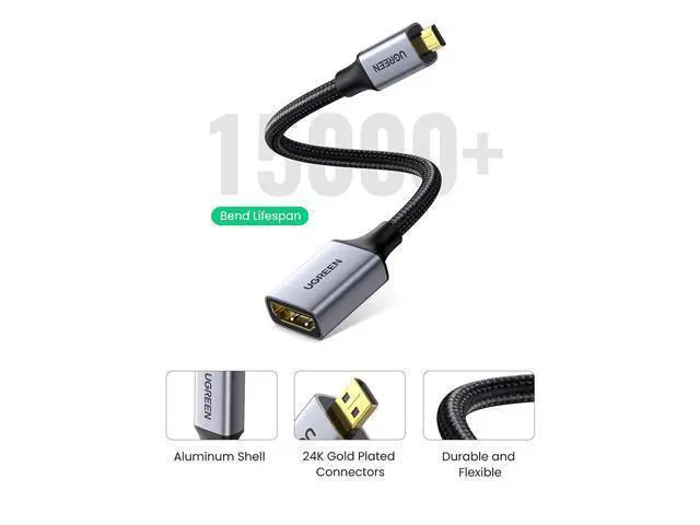 Extreme Durability: Featuring the combination of gold-plated connectors, copper conductors, foil and braid shielding, high-quality aluminum housing, this male to female Micro HDMI cable is durably built for clear signals, minimal interference and physical strain