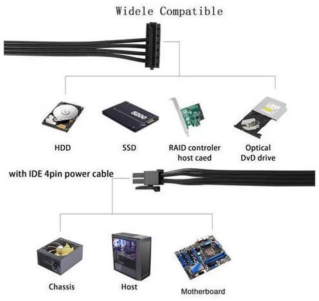 Compatibility: Compatible with applicable to specific brand computer motherboards with mini 4-pin ports and widely compatible devices with SATA interfaces, such as SSD, HDD, Blu-ray drives, and CD drives.
