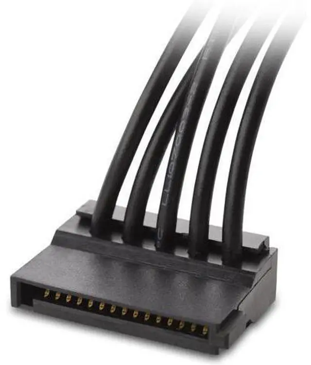 SATA splitter cable powers up to four Serial ATA HDD, SSD, optical drives, DVD burners, and PCI-E cards from a single connection to computer power supplies; Snug-fitting drive SATA power cable clicks into place on your power supply to provide a secure connection that prevents accidental disconnection Upgrade cost saver SATA power splitter cable spares the expense of upgrading an existing power supply to connect new SATA drives; Cost-effective 2-pack provides a spare power cable for new installations or repairs; Keep a spare in your IT toolkit or at the test bench DIY or pro installers both appreciate the convenience of sharing a PSU connection when installing new internal components like a DVD burner; 18 inch cable harness has 4 SATA drive receptacles spaced at 4.5 inch intervals; Provides sufficient length for internal cable management to minimize airflow impact in most configurations Hdd power cables have 4-SATA 15 pin female receptacles and 1-SATA 15 pin male plug at one end; Constructed with flexible 18 AWG conductors for reliable performance when connecting four SATA hard drives to a power supply; Supports 3.3V, 5V, and 12V power voltages between SATA I, II, III drives and power supply connections without any degradation of performance Universal compatibility with computer power supplies with SATA connectors and popular