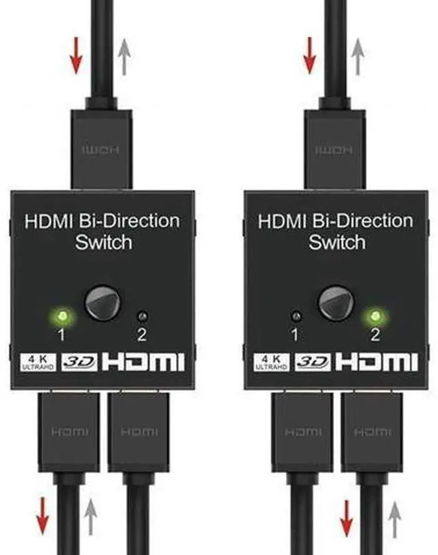 • UPGRADED HDMI SWITCH: Solid Aluminum Alloy construction, this durable HDMI bi-directional splitter help you connect two HDMI sources to one HDMI display, or connect one HDMI source to toggle between two displays.