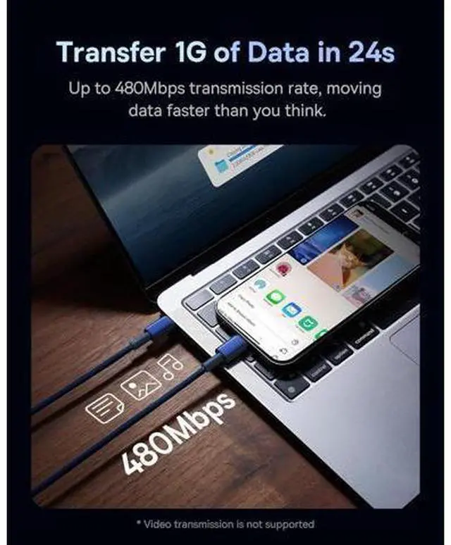 • Broad CompatibilityThis cable supports most of the fast charging protocols on the market. It can charge all USB-C phones, tablets, laptops, even the latest MacBook Pro/Air, iPad Pro at maximum speed. ( Note:This usb c cable is for data transmission only and does not support video transmission )