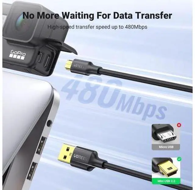 USB: UGREEN USB mini cable connects your USB-ready computer or USB hub to a digital camera like PowerShot ELPH / Rebel, Sat Navigation, Garmin GPS Receiver, Game controller, Zoom Mic, Dash Cam, old Phone and other devices with Mini B 5-Pin connector. SuperSpeed for