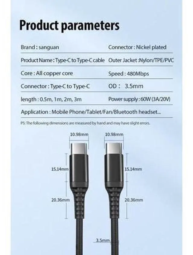 Power and connect your modern devices with this high-performance USB-C to USB-C Cable. Designed for 60W fast charging and stable data transfer, its durable nylon braided construction ensures reliable performance for all your USB-C laptops, phones, and accessories. Key Features High-Power 60W