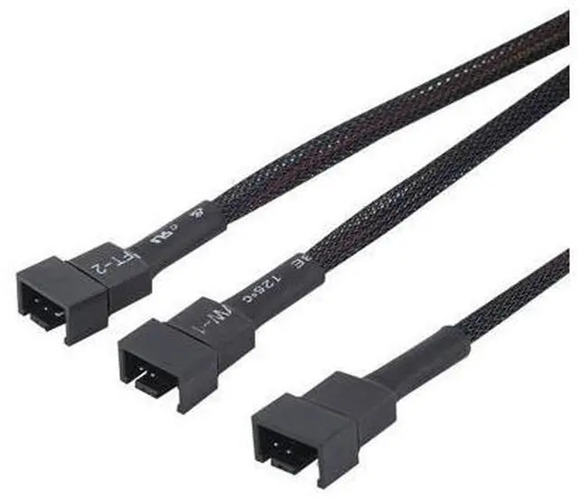 Spare Cable Convenience Pack: Cost-effective 2-pack of computer fan splitter 4 pin cables provides a spare cable for adding a fan to increase cooling in your computer; Sleeved and wrapped black 12-inch case fan splitter cable provides a tidy look in an open computer case. Wide Compatibility for