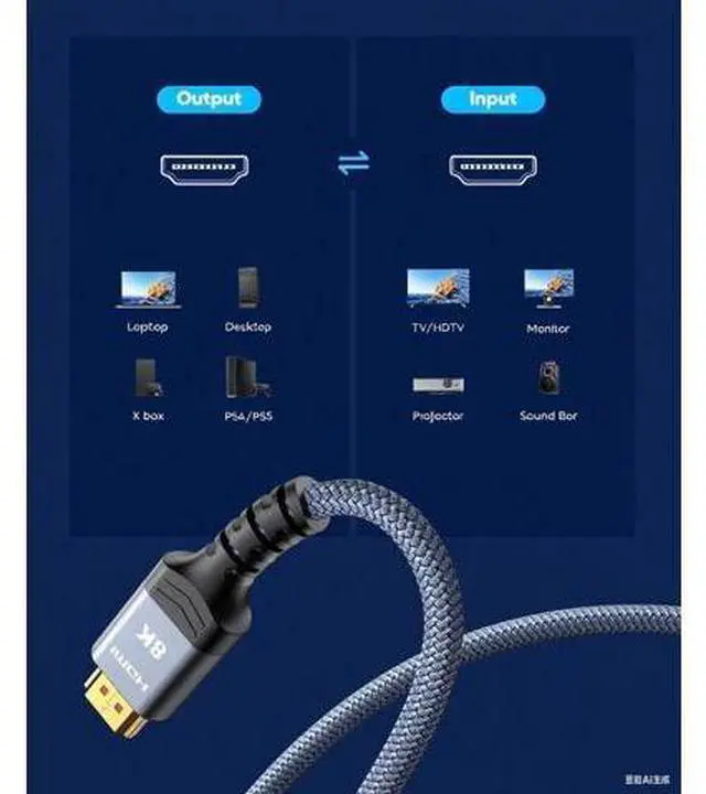 Cable 48Gbps: Ultra-high-speed cable supports 8K@60Hz, 4K@120Hz/144Hz, and 1080P@240Hz. Backward compatible with HDMI 2.0 / 1.4