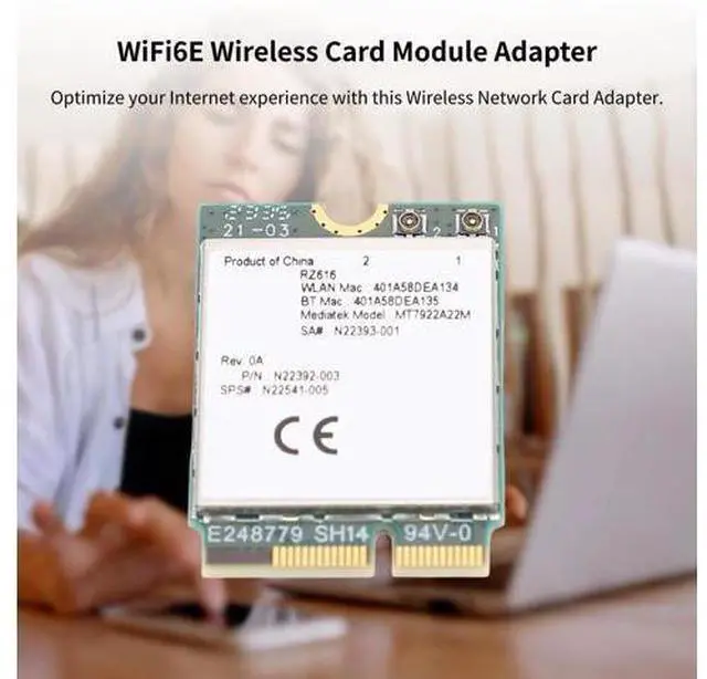 RZ616 MT7922A22M M.2 WiFi6E WL Network Card Module, 5374Mbps Bluetooth 5.2 Tri Band WiFi6E Card Adapter, for Computer, for Linux Compatible, Easy Installation