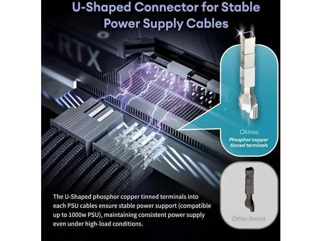 [U-Shaped Connector for Stable Power Supply Cables]The U-Shaped phosphor copper tinned terminals provide stable power support, delivering consistent power supply even under high-load conditions. [Cable Combs Included]24-Pin Comb ×4 / 8-Pin Comb ×12 / 3-Pin Comb ×6