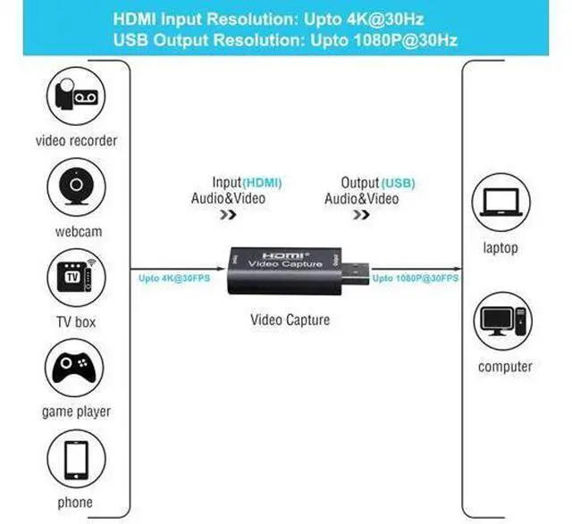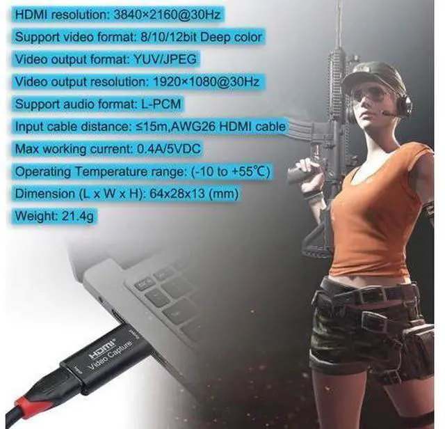 Plug and play- Hdmi video capture easily connect your DSLR, camcorder, or action Cam to your PC or Mac. Hdmi to usb video capture card is small, light and portable