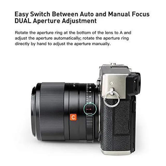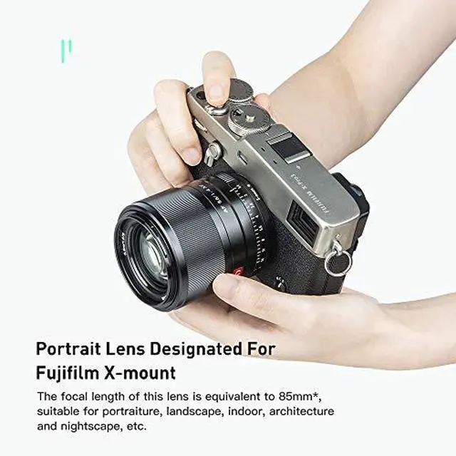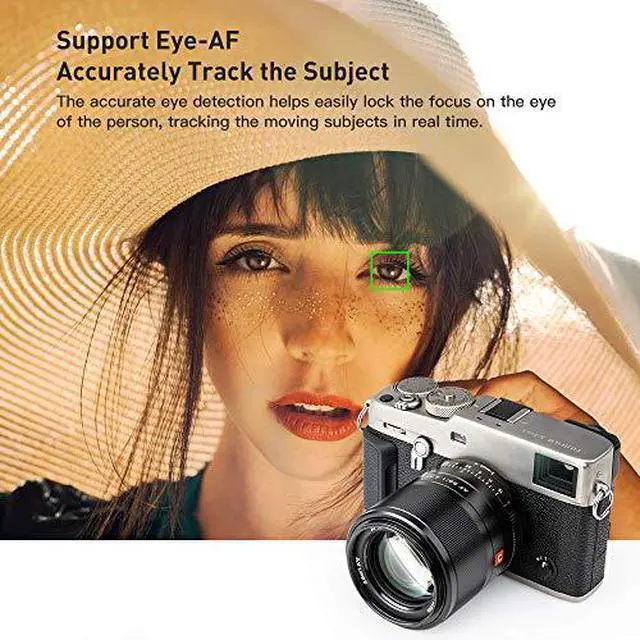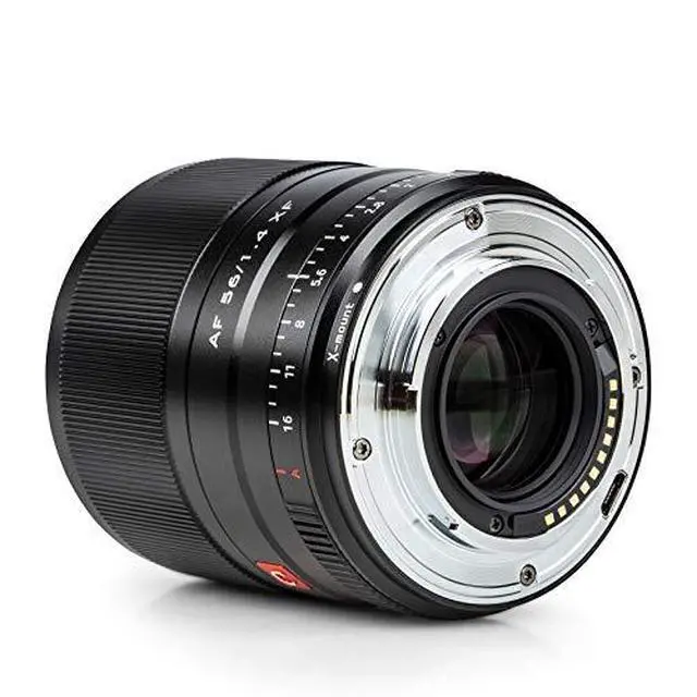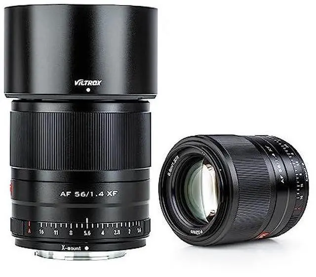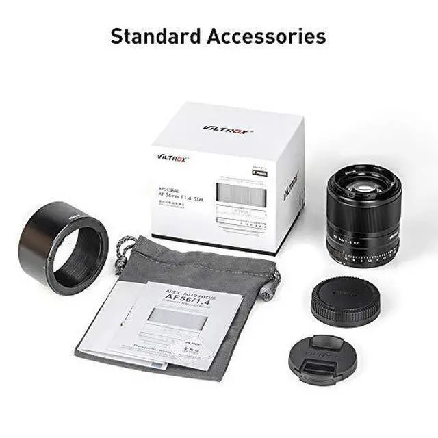 Fuji Contenido del paquete: 1 lente, 1 tapa de lente frontal, 1 tapa de lente trasera, 1 bolsa de lente, 1 caja de paquete Viltrox AF 2.205 in f/ 1.4 Fuji XF Lente vertical en formato APS-C Viltrox AF 56/f 1.4 XF es una lente vertical APS-C estándar con una longitud focal equivalente de 3.346 in para cámaras Fujifilm serie X, con gran nitidez y buen bokeh, soporte Eye-AF y actualización USB. Es una gran opción para retratos, paisajes o arquitectura, etc. Parasol para parasol de lente Para evitar que la luz parásita entre en la lente, mejorando tu contraste y calidad de imagen, también puede proteger la lente de la humedad, los desechos soplados por el viento y los impactos Puerto micro USB integrado Se puede utilizar para actualizar el firmware de la lente, haciendo futuras actualizaciones de firmware a la lente. Estructura metálica precisa Cada accesorio de metal se produce bajo un estricto control de calidad para que sea preciso. Esta lente es muy robusta y duradera. Diseño ligero de 10.23 oz Súper ligero y portátil, muy conveniente para empacar y llevar en mochila o bolsa de cintura, para satisfacer las diversas necesidades de fotógrafos o cineastas.