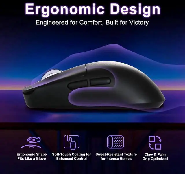Ergonomic Design: Mouse carefully crafted based on the principles of ergonomics, it fits the natural gripping curve of the hand. Whether you have large or small hands, and no matter what grip style you use, such as palm grip, claw grip, or fingertip grip, you can get comfortable support,You won't feel hand soreness even after long-term gaming, allowing you to focus on the battle in the game and enjoy a comfortable operation