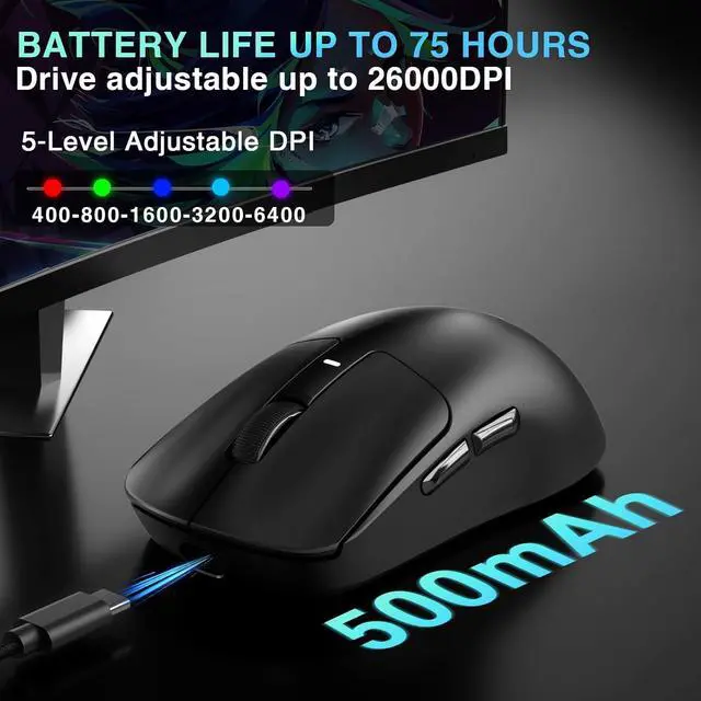 High Performance Sensors: This gaming mouse is equipped with a powerful PAW3395 sensor, 26000 programmable DPI, 650 IPS speed, 50g acceleration, and 8000Hz polling rate, ensuring precise cursor movement, enabling gamers to perform precise operations and office workers to easily handle work