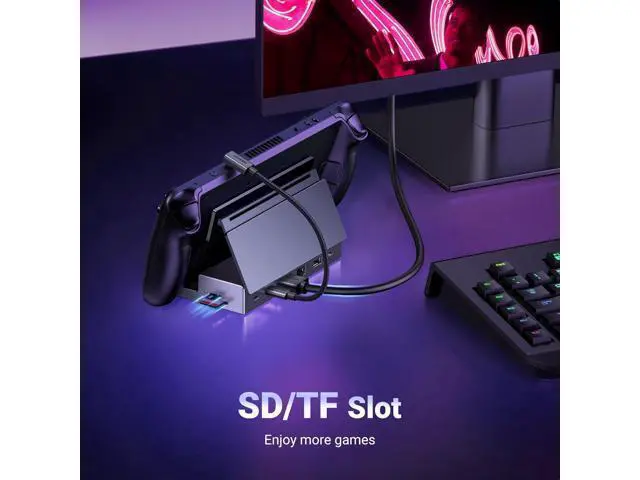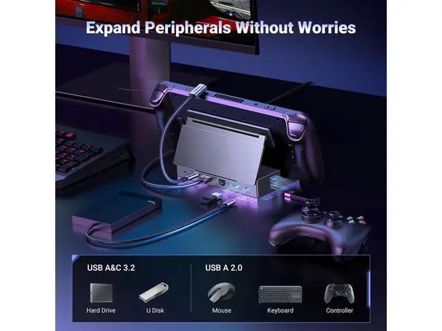 Widely Compatible: This handheld gaming dock is widely compatible with gaming consoles such as Steam Deck, ROG Ally, ROG X, ROG Xbox Ally, LEGION Go and MSI Claw A1M. Also it is widely compatible with various USB-C devices to meet a variety of needs, like iPad Pro/Air, Surface Pro8 & Go