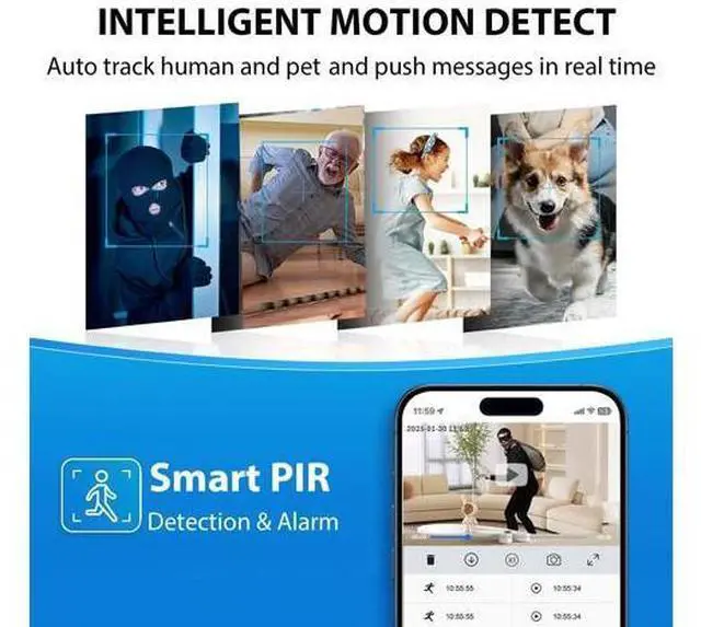 Many so-called '4K' competitors cant even match our real-world claritybecause honest specs matter. See the difference truth makes. Advanced Power-Saving Technology for Maximum Efficiency! Enjoy unparalleled peace of mind with our ultra-long-life battery. Once fully charged, it provides up to two months of non-stop security monitoring, eliminating the hassle of frequent recharging. Smart PIR Motion Detection - Fewer False Alarms, Smarter Alerts! The C12 Wireless Indoor Camera features advanced PIR human detection to distinguish real threats from pets, leaves, or shadows. Get accurate alerts only when people enterno more annoying false alarms! Keep an eye on what you cared 24/7! The C12 small camera is your versatile security companion, designed to safeguard what matters mostanywhere, anytime.