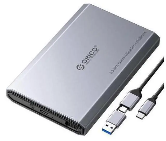 ORICO Aluminum USB C Hard Drive Enclosure for 2.5 Inch SATA SSD/HDD, USB 3.2 GEN 2 USB C to USB A/C 2 in 1 Cable, Support macOS Windows Linux OS, Compatible with Samsung Crucial WD Drives(DD25-C3)