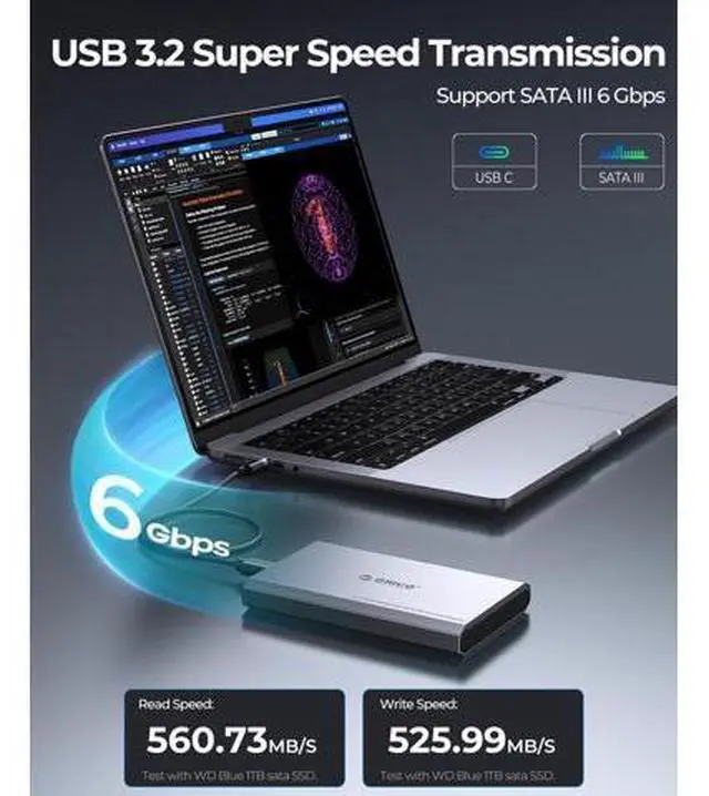 6Gbps SuperSpeed Transmission: Equipped with 10Gbps SuperSpeed chip, the 2.5 SSD enclosure fully supports maximized SATA III 6Gbps transmission rate. Supported by UASP accelerated transmission protocol, it gets speeds 20% faster than conventional USB 3.0. You can transfer 1GB file in seconds