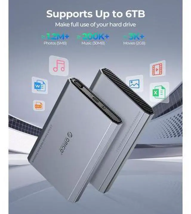 USB 3.2 GEN 2 with 2 in 1 Cable: The ssd enclosure is compatible with 2.5 inch SATA SSD/HDD in 7mm/9.5mm thickness, supports up to 6TB capacity, and is equipped with Type C to Type A/C 2 in 1 10Gbps cable to better matching with more devices, PC, Tablet, PS5, TV and phone