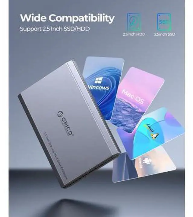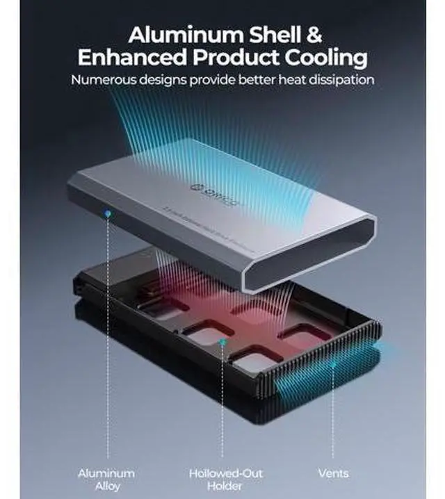 Aluminum Case and Heat Dissipation: The USB C hard drive enclosure features a sleek aluminum alloy housing and efficient heat dissipation vents. It provides with strong protection, excellent heat dissipation, and optimal performance for your 2.5 inch SATA SSD/HDD