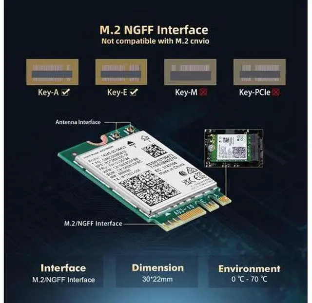 WiFi 6E Card M. 2 AX210NGW Network Adapter, Intel AX210 Chip Bluetooth 5.3, 5400Mbps Tri-Band 2.4GH z/5GHz/6GHz OFDMA & MU-MIMO, for Laptop Windows 10/11