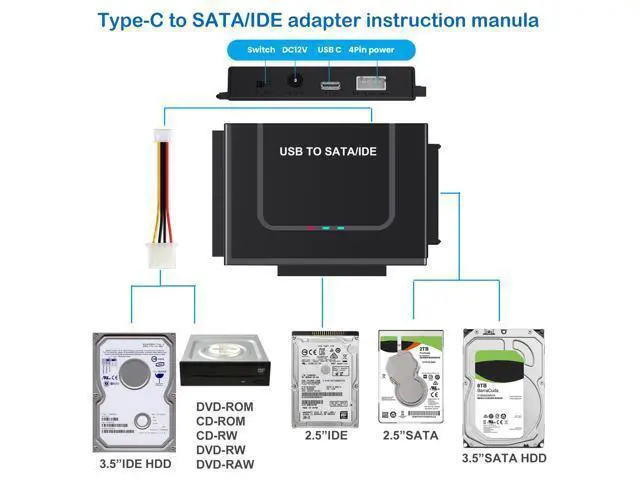 Universal Hard Drive Reader: This USB to SATA adapter supports 2.5" /3.5" IDE SATA SSD HDD capacity up to 6 TB, also for CD-ROM, DVD-ROM, CD-RW, DVD-RW, DVD+RW devices, can be used on Windows 11/XP/Vista/7/8/10, Mac OS 10. X