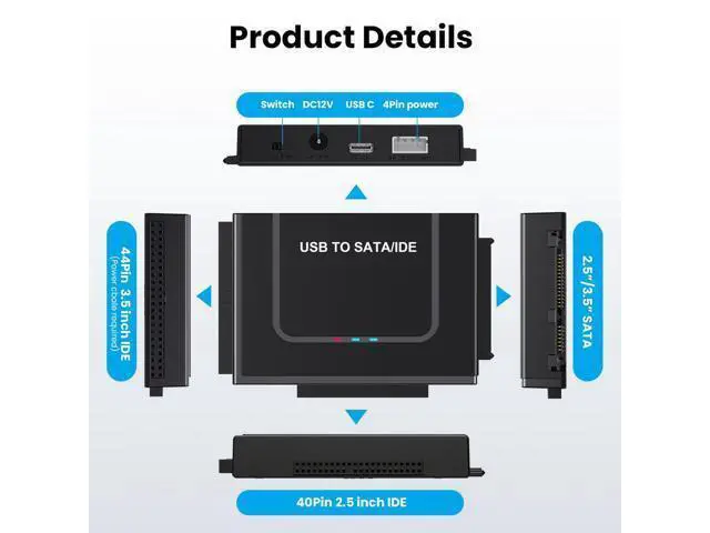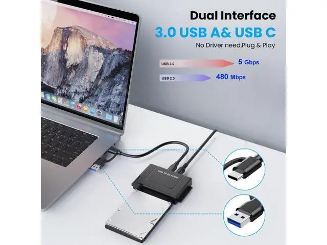 Plug and Play: No driver is required for this SATA USB adapter. Connect the hard drive, USB Cable, and power adapter, then turn on the power switch to start to transfer files, copy data, etc, LED light shows power and activity status.