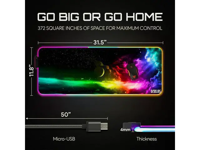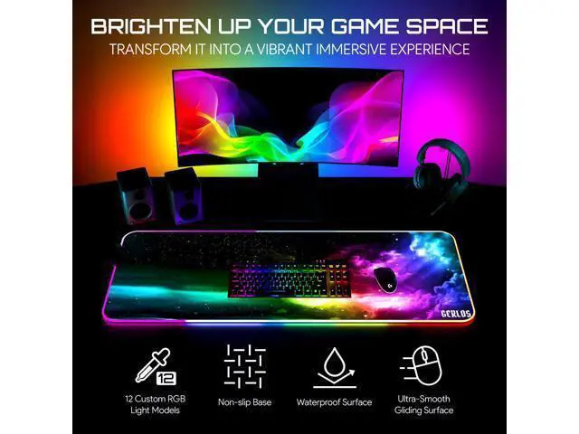 Developed with user convenience and work efficiency in mind, these products contribute to improving daily life and work environments. GERLOS aims to continuously innovate, striving to make life more convenient and stylish through its thoughtful and cutting-edge product designs Gaming Mouse Pad Gaming Mouse Pad The Gerlos RGB Large Gaming Mouse Pad is the ideal solution for rgb gaming mouse pad, extended desk mat, and office desk setups. It features a versatile 31.5 × 11.8 inch surface for teen and adult users, 12 vivid RGB lighting modes, a precision micro-textured cloth surface, a durable non-slip rubber base, water-resistant stitched edges, and easy plug-and-play USB power.