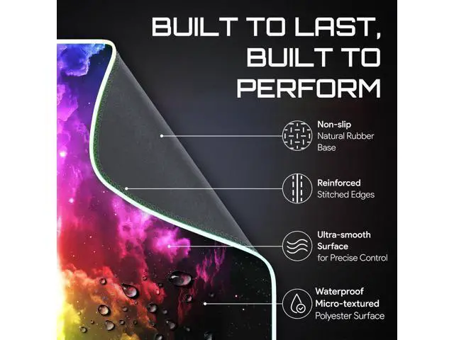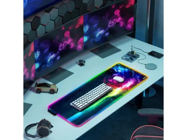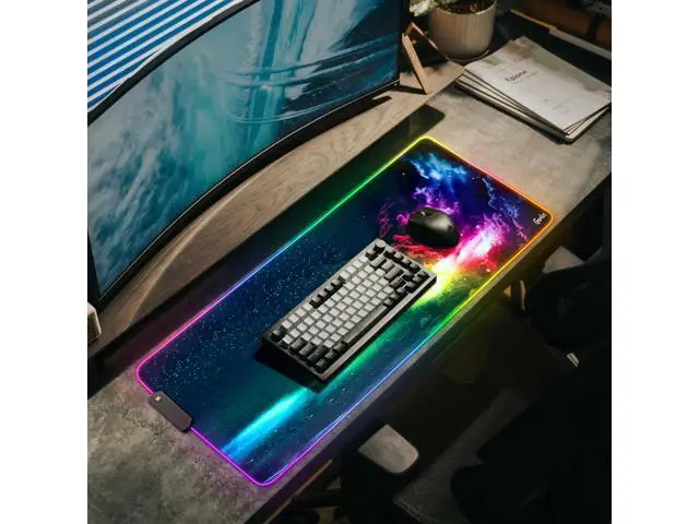 Manufactured under strict quality control, it ensures premium quality and lasting durability. The advanced micro-textured surface design provides a unique selling point and delivers smooth, accurate tracking for both low and high DPI mice. The thick natural rubber base offers stable, skid-free performance, making it suitable for fast-paced gaming and long office sessions. It perfectly complements pc gaming accessories and home office environments. Our product is easy to set up and maintain, equipped with a one-touch lighting control button and a wipe-clean coating designed for comfort and consistent performance. This RGB gaming mouse pad, ideal for both work and competitive play, measures 31.5 × 11.8 inches and 800×300 mm in size.