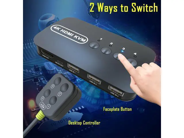 4K@30Hz Monitor - 3840*2160/30Hz, 1080P, 4 orginal hdmi 1.4 b kvm cables, sync with 3D audio video. 4k monitor, smart tv, projector. 2 ways to switch - desktop controller and faceplate button. you can use the controller or push the button to swaping the pc. the Led lights indicate working computer. usb powered no addtional dc adptor Occasions and Events - great for group conference, advertising, office, multimedia, learning, financial securities, presentations, video teaching, public security monitor, video broadcasting system.
