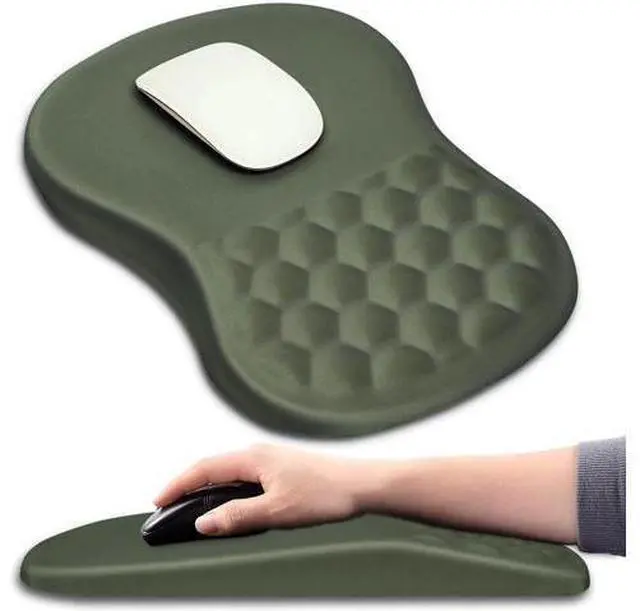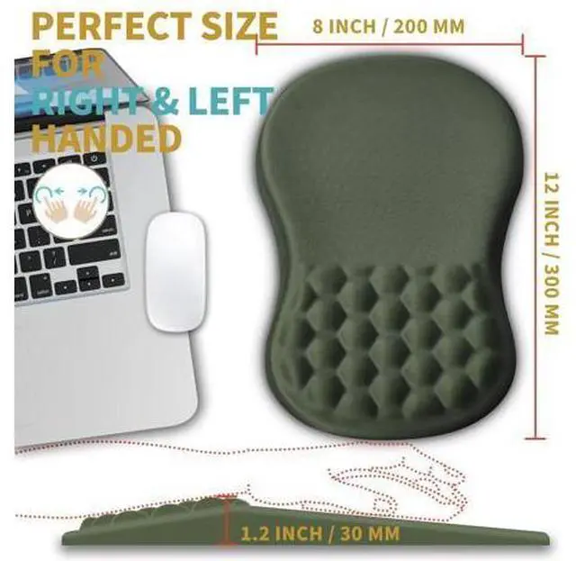 Hokafenle Ergonomic Mouse Pad Wrist Support with Massage Design, Wrist Rest Pain Relief Mousepad with Memory Foam&Non-Slip PU Base, Mouse Pads for Wireless Mouse & Desk (12x8 inch,Olive Green)