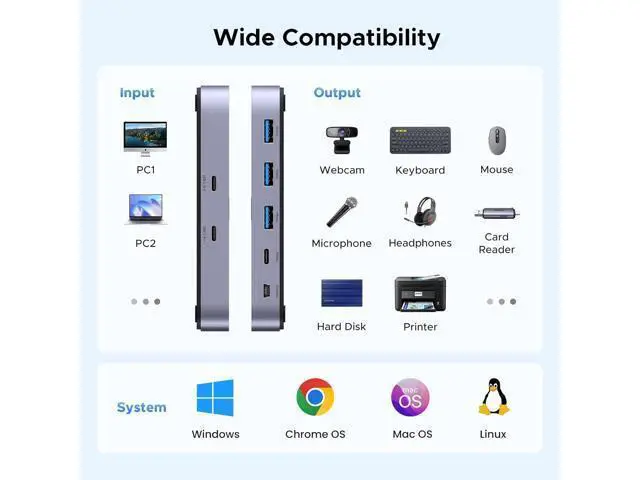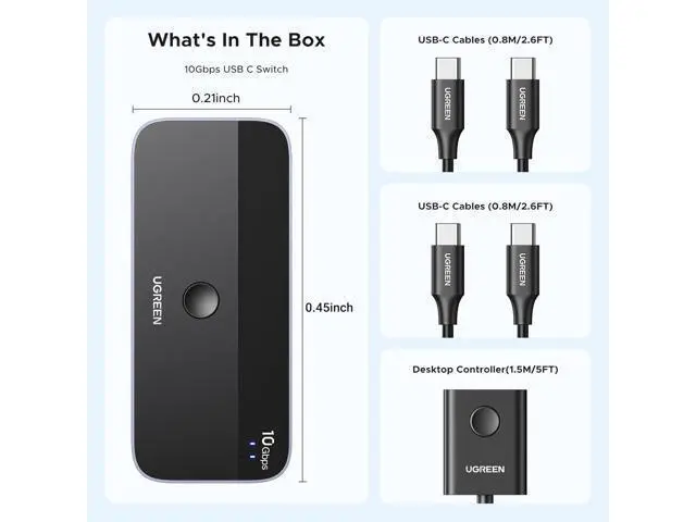 USB-C PCs Share Multiple Devices: UGREEN 2-In 4-Out USB-C switch supports sharing 4 USB devices like a keyboard, mouse, and headphones between 2 computers. Switch freely between work computer and personal laptop to boost work efficiency. (Not a KVM switch and Not support a monitor) 10Gbps