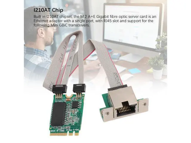 I210AT Chip: Built in I210AT chipset, the M.2 A+E Gigabit fibre optic server card is an Ethernet adapter with a single port, with RJ45 slot and support for the following Mini GBiC transceivers.