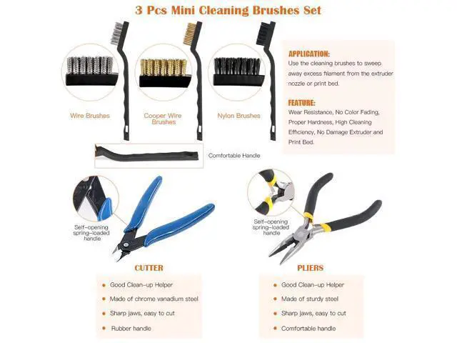 42 Piece Essential Printer Tool KitYou just need to purchase one convenient toolkit. This 3D Printer Tool Kit contains all kind of essential tools, ideal for removing, cleaning and finishing the printed craft, meeting your all needs in DIY. It is the perfect hand tool for all 3D Printing Professionals, Hobbyists and Makers. The perfect tool is used for manufacture toys, cars, robots, cartoon, and other crafts.