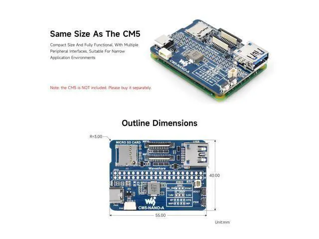 Dimensions: With a compact size of 55 × 40mm, the Nano Base Board (A) is designed to fit into space-constrained applications while maintaining high