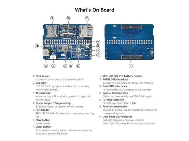 Compatibility: Designed for evaluating the Raspberry Pi CM5 or integrating into end products, the Nano Base Board (A) is fully compatible with all variants of the Compute Module 5.