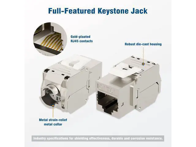 Lightning-Fast 10G speed: Iwillink ethernet keystone Jack Seamless metal construction with gold-plated contacts provide superior Cat 6A performance up to 10 Gigabit