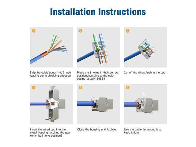 Compatibility performance: The Shielded keystone jack can be wired for T568A or T568B wiring. Supports 23 to 26 AWG solid or stranded wire; Cat6A connector is backwards compatible with Cat 6 and Cat 5e bulk cable