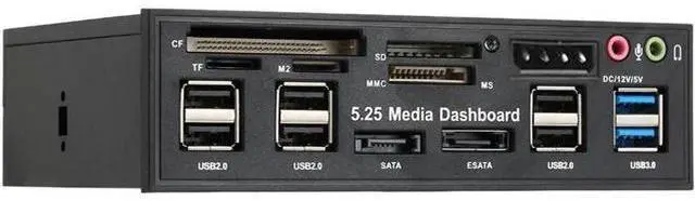 Packagelist: 1 * 5.25" Internal SATA e-SATA two USB 3.0 Six USB 2.0 Five-in-one Card Reader Multi-Function Front Panel Media Dashboard 4 * Screw 1 *