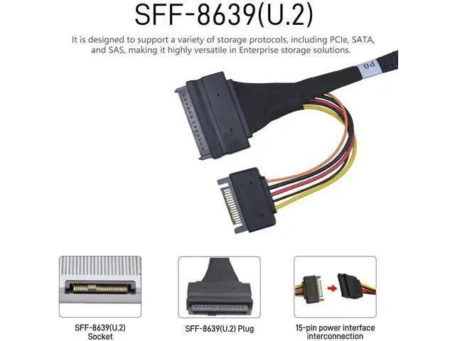 Integrated Power Delivery: The included 15Pin SATA Power Supply Cable ensures stable and efficient power delivery to your U. 2 NVMe SSDs. Dependability is built into every connection, so you can trust consistent performance every time. For those who demand the best, our PCIe 5.0 Data MCIO Cable is more than just a cableit's a powerful ally in your quest for high-speed data transfer and storage expansion. Get now and take your system's performance to new heights.