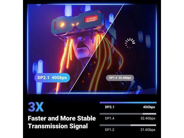 Cable 2.1: This Display Port 2.1 / 2.0 cable features an unprecedented bandwidth of 40Gbps, nearly 3 times what was available in the previous DP 1.4 spec. Stable and high-speed transmission without signal loss. The DisplayPort cable also backward compatible with previous DP 1.4 and DP 1.2 standards. The monitor cable meets the Standard and supports 3D&HDR and Dolby&eARC to provide you with amazing sound and image quality Optimized for